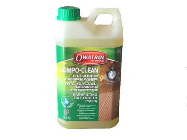To COMPO CLEAN είναι ένα άχρωμο καθαριστικό συνθετικής ξυλείας που καθαρίζει εύκολα κάθε τύπο βρωμιάς από την επιφάνεια του WPC δαπέδου ή περίφραξης όπως λεκέδες, βρύα, κηλίδες από κακοκαιρία κλπ. με τη βοήθεια του νερού .