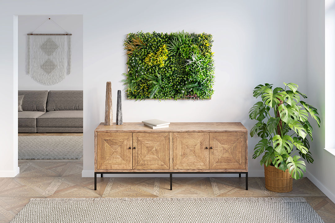 Συνθετικό διακοσμητικό πάνελ με πυκνή φυλλωσιά, σε πλακίδιο 1m x 1m. Έχει τρισδιάστατη όψη και δίνει μια αίσθηση ζωντάνιας και φυσικότητας στον χώρο σας. Διακοσμήστε τον εξωτερικό ή εσωτερικό χώρο σας με τα πάνελ φυλλωσιάς και δημιουργήστε έναν μοναδικό κάθετο κήπο.