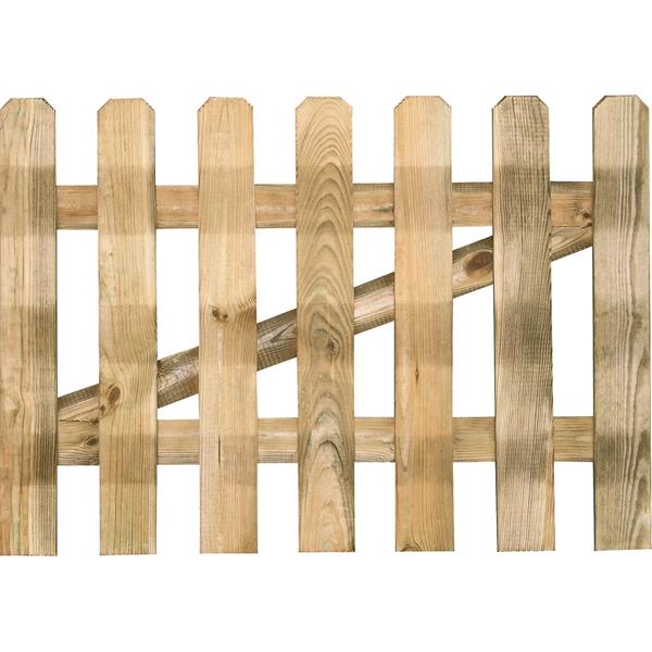 Πόρτα φράχτη από εμποτισμένη ξυλεία, αποτελούμενος από 7 λείες τάβλες πλάτους 9cm και πάχους 2cm τοποθετημένες κάθετα. Διατίθεται μαζί με τους μεντεσέδες και συνδυάζεται με τον λείο φράχτη με 11 ξύλα.