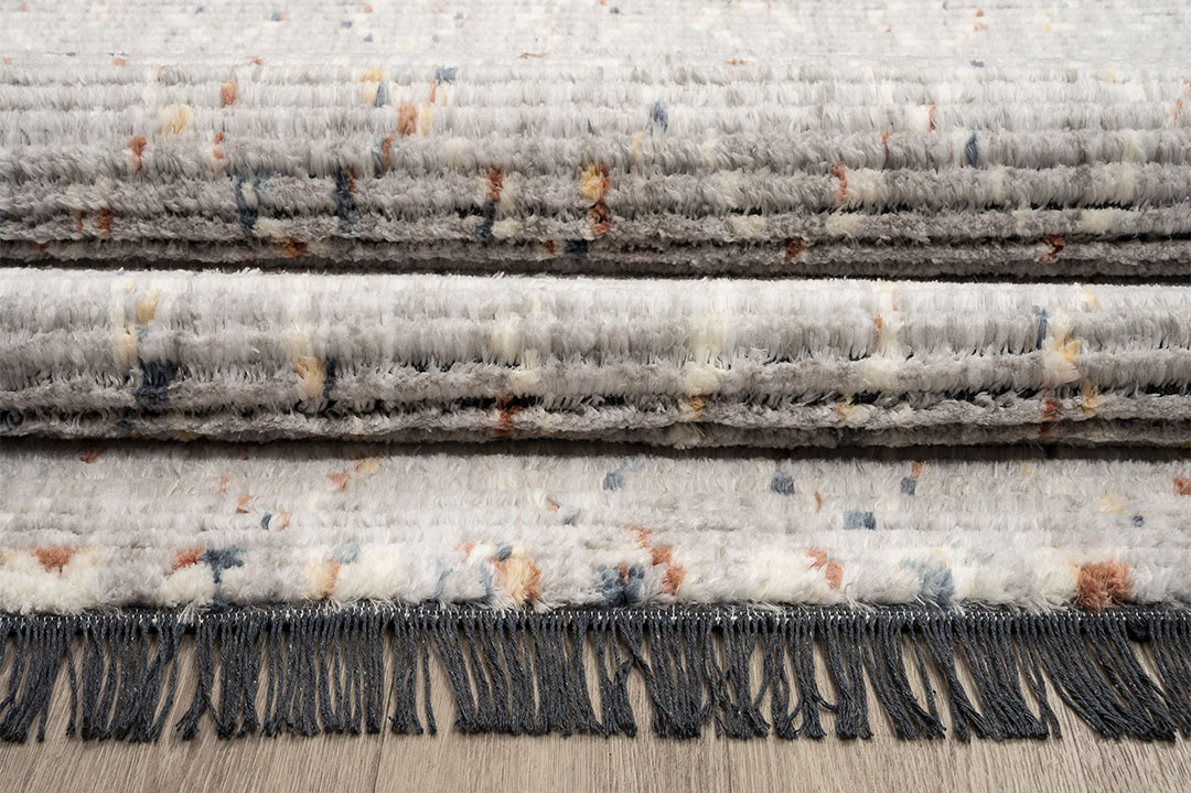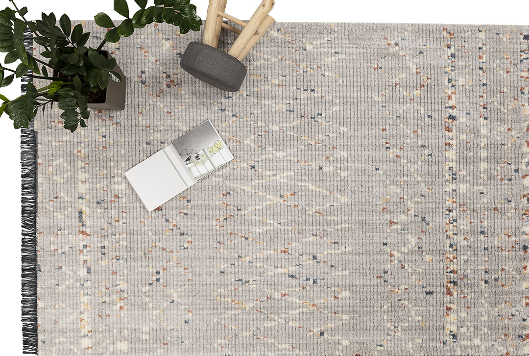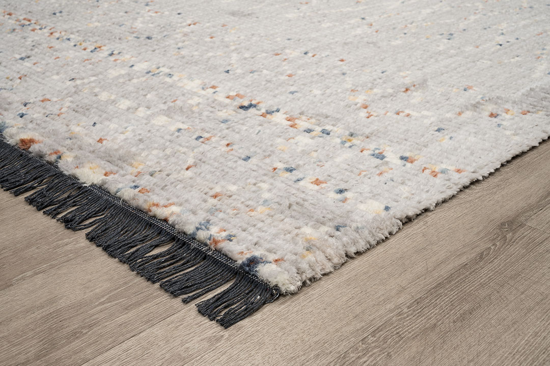 Το πολυεστερικό νήμα τους και τα ζεστά terra χρώματά τους θα δημιουργήσουν μια ιδιαίτερα γλυκιά ατμόσφαιρα στο χώρο που θα στρωθούν. Διαθέσιμo επίσης και σε ηπίους τόνους του λευκού και pastel grey αλλά και του δυναμικού navy blue, το χαλί αυτό μοιάζει με μια σύγχρονη εκδοχή των αφγανικών χειροποίητων νομαδικών χαλιών και φιλοδοξεί να κλέψει τις εντυπώσεις. Επιπλέον , αποκτά προστιθέμενη αξία με το ιδιαίτερο κρόσσι τουπου βγαίνει μέσα από τα νήματα πλέξης του ιδίου του χαλιού .