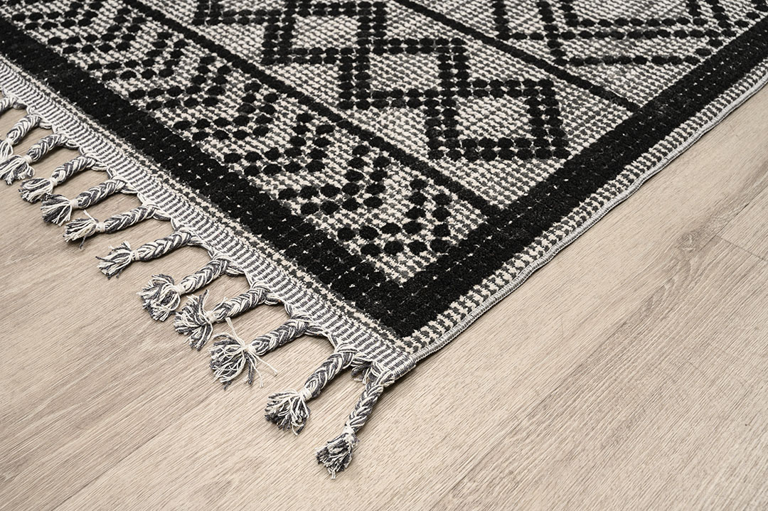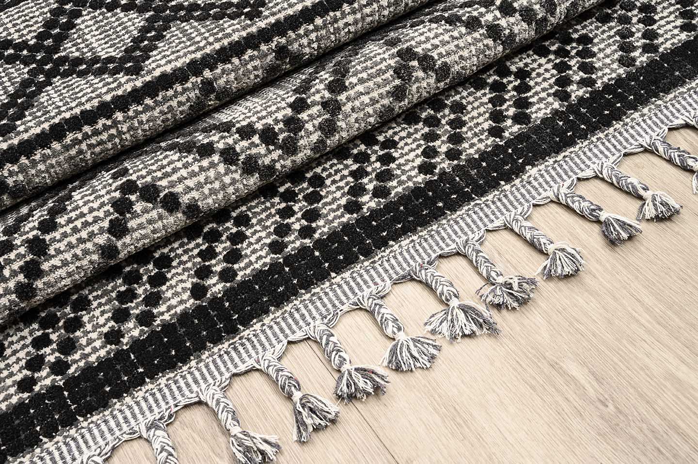 Λεπτομέρειες όπως το χειροποίητο δετό κρόσσι και το ανάγλυφο πέλος του χαλιού