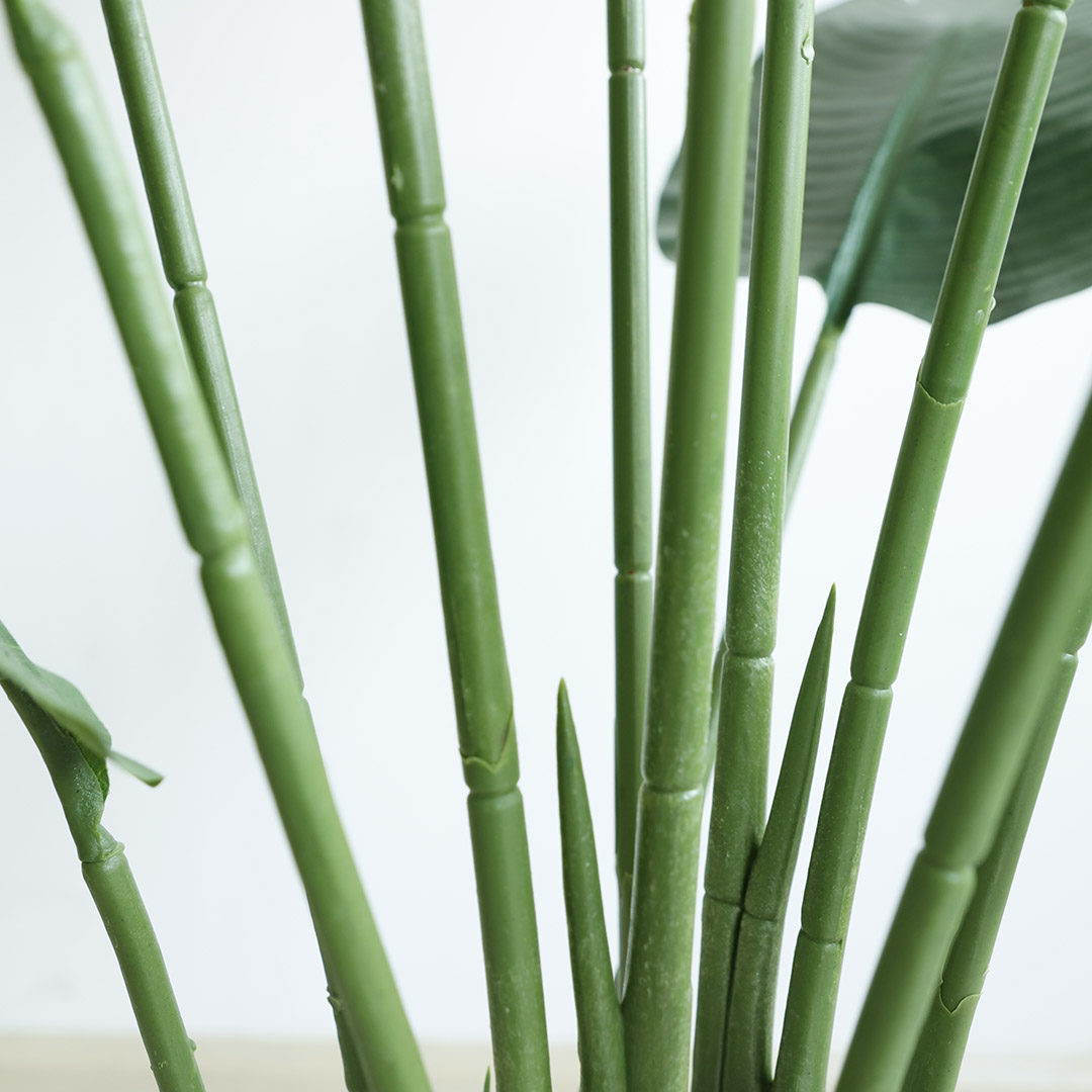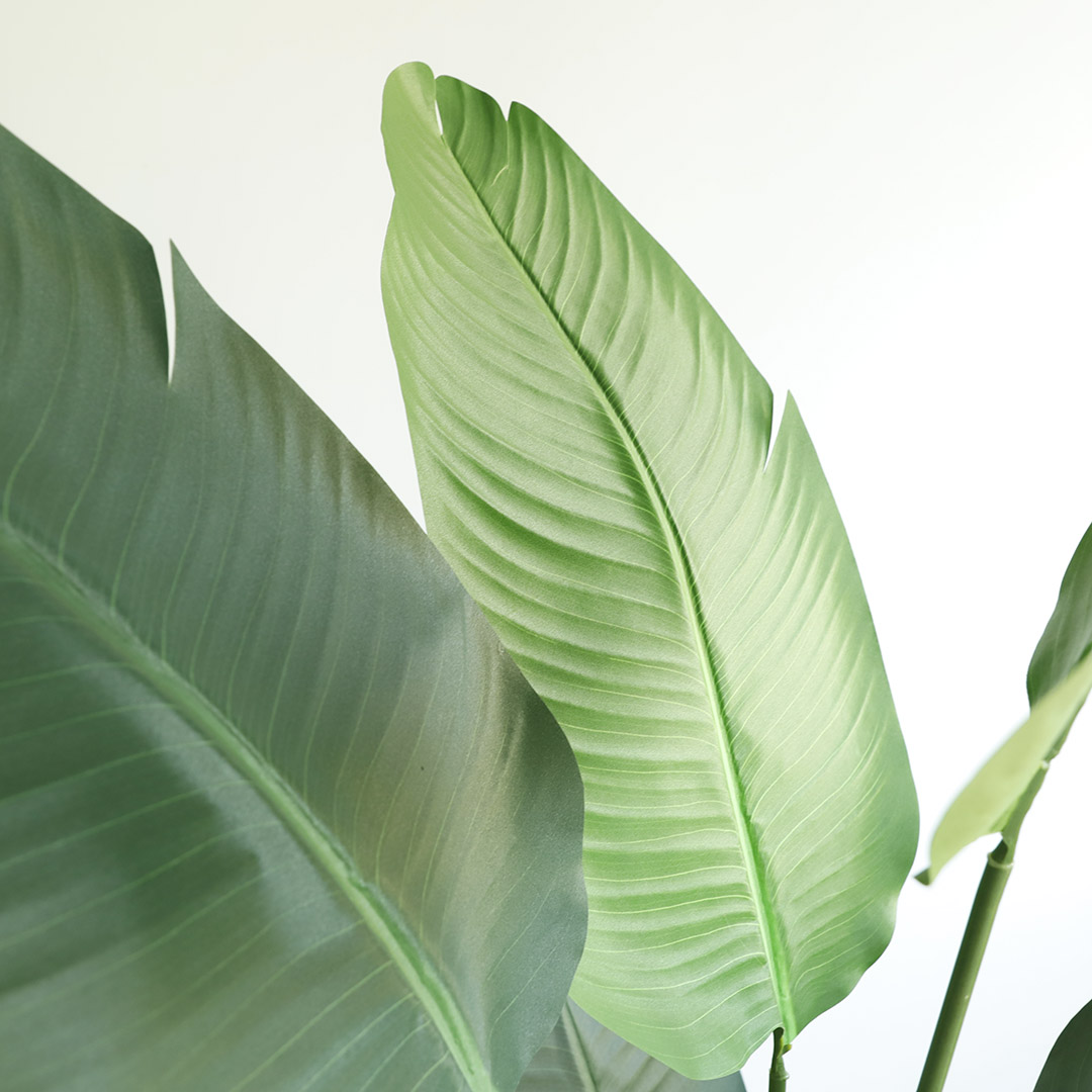 Η τεχνητή μπανανιά της ποικιλίας Ravenala Μαδαγασκάρης με τα πυκνά και πλούσια πράσινα φύλλα της, θα δώσει μια αίσθηση τροπικού κλίματος στον χώρο που θα επιλέξετε να την τοποθετήσετε.