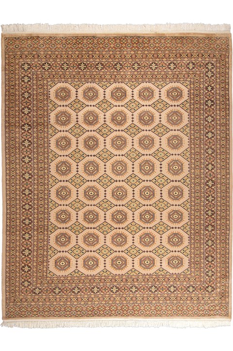 Χειροποίητα χαλιά από το Πακιστάν με σύνθεση από μαλλί και μετάξι. Η χρήση του μεταξιού στις λεπτομέρειες, χαρίζει στο χαλί μια διακριτική γυαλάδα που το κάνει να μοιάζει ολομέταξο. Βαμβακερό κρόσσι, κυρίαρχοι τόνοι το βυσσινί, το μπεζ και το σκούρο μπλε, αποτελεί την πιο δημοφιλή επιλογή για τους λάτρεις του κλασικού.