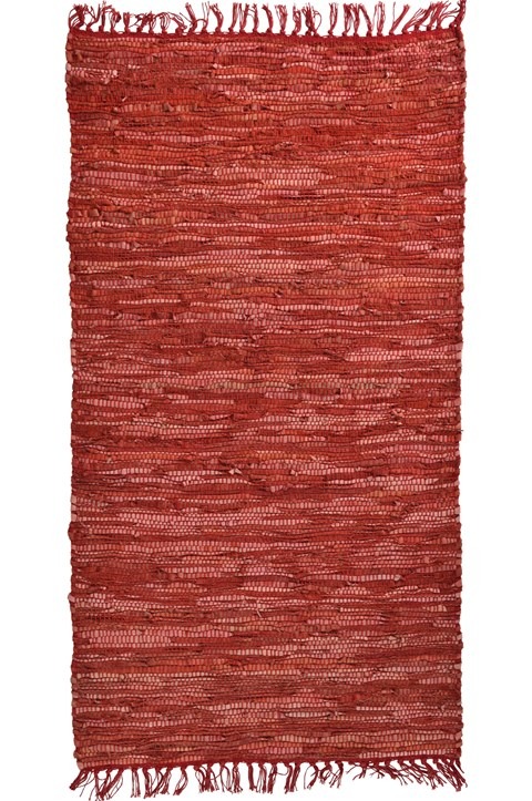 Leather Plain Rug Red