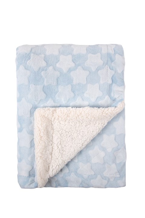 Για τα μικρά σας αστεράκια! Παιδικές Ισπανικές κουβέρτες αγκαλιάς, 100% ακρυλικές, με ανάγλυφο σχέδιο αστεριών στην εξωτερική πλευρά και απαλή χνουδωτή υφή από σέρπα προβατάκι στην εσωτερική για extra ζεστασιά. Ιδανική για όλη την οικογένεια, διατίθεται σε δύο διαστάσεις (80x110cm, 110x140cm) και 4 γλυκά παστέλ χρώματα για ονειρεμένο ύπνο ή χουχούλιασμα στον καναπέ.