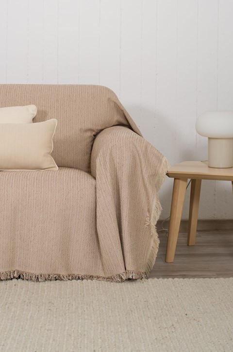 Μονόχρωμα ριχτάρια για πολυθρόνες και καναπέδες, με διακριτικά κρόσια στο τελείωμα.