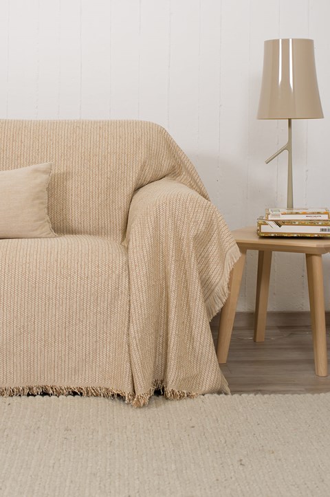 Μονόχρωμα ριχτάρια για πολυθρόνες και καναπέδες, με διακριτικά κρόσια στο τελείωμα.