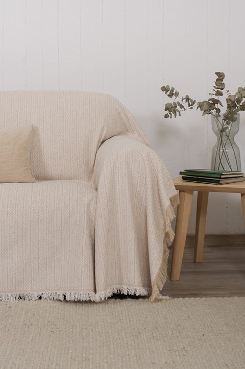 Μονόχρωμα ριχτάρια για πολυθρόνες και καναπέδες, με διακριτικά κρόσια στο τελείωμα.