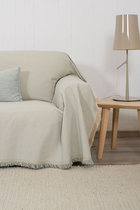 Μονόχρωμα ριχτάρια για πολυθρόνες και καναπέδες, με διακριτικά κρόσια στο τελείωμα.